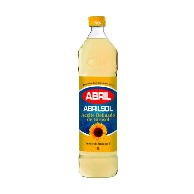 Aceite de girasol Abrilsol 1L, ideal para freír, cocinar y ensaladas. Ligero, saludable y versátil en la cocina.